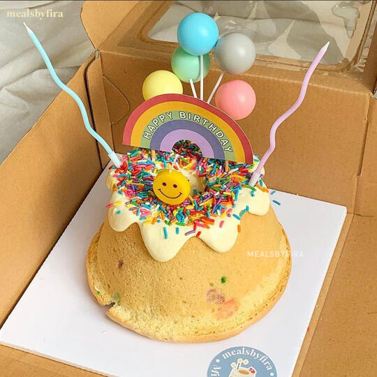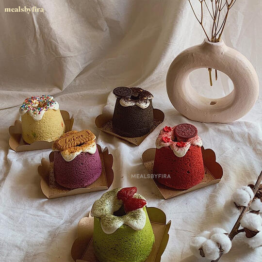 Our mini chiffon cakes are made with halal and fresh ingredients with cream cheese on the top of the cake. Our cakes includes a box with stickers, greeting card, hangtag, ribbon, spork, and blow candle.keep refrigerated. best consume within 2-3 days in the chiller. 1-2 hours at room temperature before the cream cheese melts.
